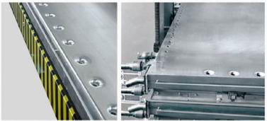 設(shè)備的安全系統(tǒng)有效保證了操作人員和機器的安全。該機符合我們主導(dǎo)制定的《皮革機械 板面移動式機械 安全要求》標(biāo)準(zhǔn),該標(biāo)準(zhǔn)參照并高于歐洲標(biāo)準(zhǔn)EN 1035:1998
